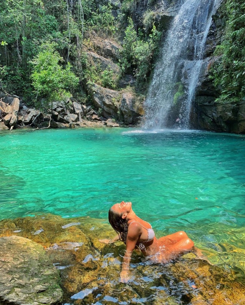 Queridinha entre os turistas, a Cachoeira Santa Bárbara já se tornou uma das principais atrações da Chapada dos Veadeiros. . A água, com intensos tons de azul claro, dá um certo ar de Caribe ao lugar. A cachoeira não é muito alta e tem apenas 30 metros, entretanto a beleza do poço que cerca a queda d’água é mesmo de apaixonar. . Em dias de água perfeita, a transparência é capaz de causar comoção entre os amantes do mergulho e, claro, de fotografias. . A @erysmartins aproveitou bem o dia e fez esse click 📸 perfeito na cachoeira e mereceu todo nosso destaque 👏🏻 .