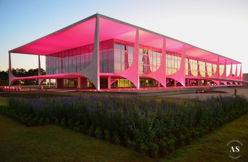 No Centro Oeste brasileiro também encontramos nossa linda capital, que é uma cidade cheia de atrativos incríveis. . No mundo todo os momentos estão se iluminando de rosa, em homenagem ao outubro rosa, mês de combate ao câncer de mama. . O @augustussperlingfotografia fez esse espetacular click 📸do palácio do planalto e mereceu todo destaque em nosso feed. . Visite Brasilia e se encante pelas belas paisagens e o turismo histórico cultural da capital brasileira. .