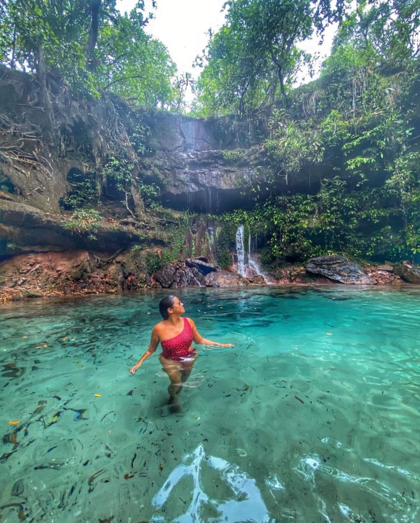 Agora vamos dar inicia a uma infinidade de tons de azul em nosso feed. . O Mato Grosso reúne inúmeros lugares com cachoeiras de tom azulado que são verdadeiros paraísos na região central do Brasil. . A cidade de Nova Xavantina é um parque de diversão para quem ama ecoturismo. É na cidade que encontramos um dos rios mais limpos do mundo, o Rio das Mortes é uma das maiores belezas naturais do município e principal lazer da população. O rio é cheio de lendas e justificativas para seu nome. Alguns dizem que foram enchentes assassinas, outro dizem que suas margens foram palco de sangrentas batalhas entre xavantes e garimpeiros. Ao longo do percurso do Rio pode-se visitar diversas ilhas como Ilha 26, Ilha do Pintado, Ilha do Capitariquara e Ilha de São sebastião. Na praia do Sol fica atracada uma chalana que pode ser alugada para passeios de grupos de até 30 pessoas. Foto perfil do Instagram de Marina Martins.