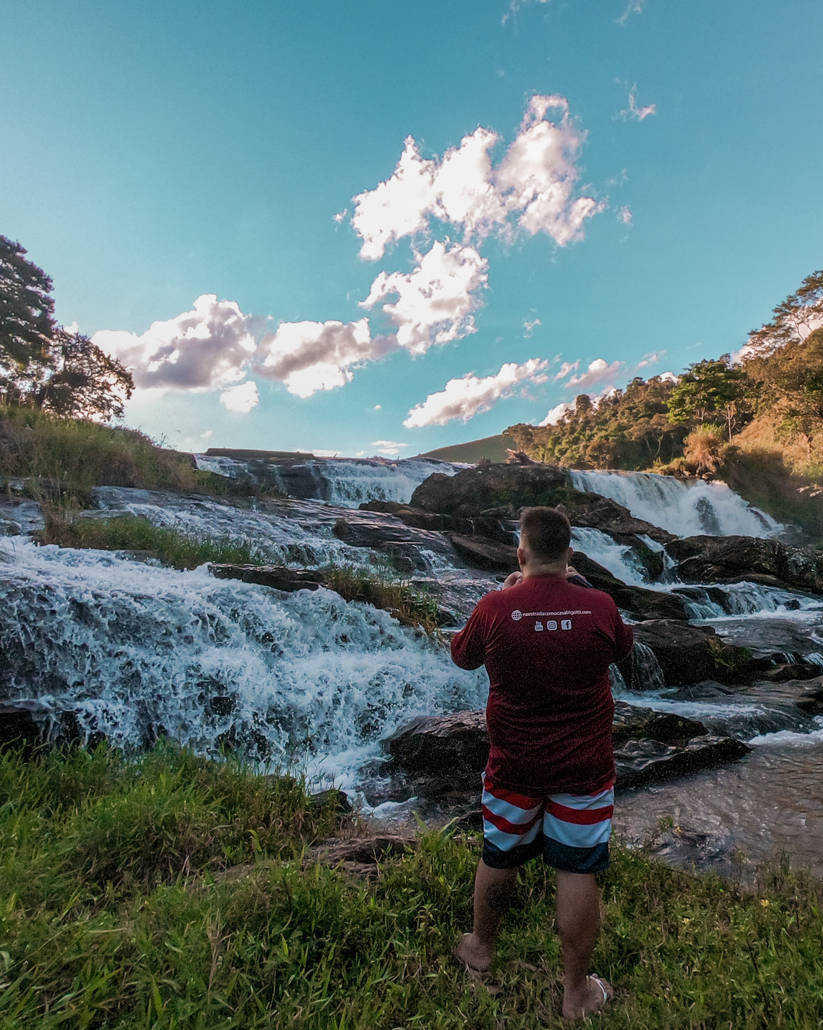 Umas das mais conhecidas na região, a cachoeira três quedas fica a uns 15 minutos da praça principal, também na zona rural do distrito, onde estacionamos nosso carro, pois não é 4X4 e tem que atravessar um riozinho, bem raso e seguimos a pé pela estrada.