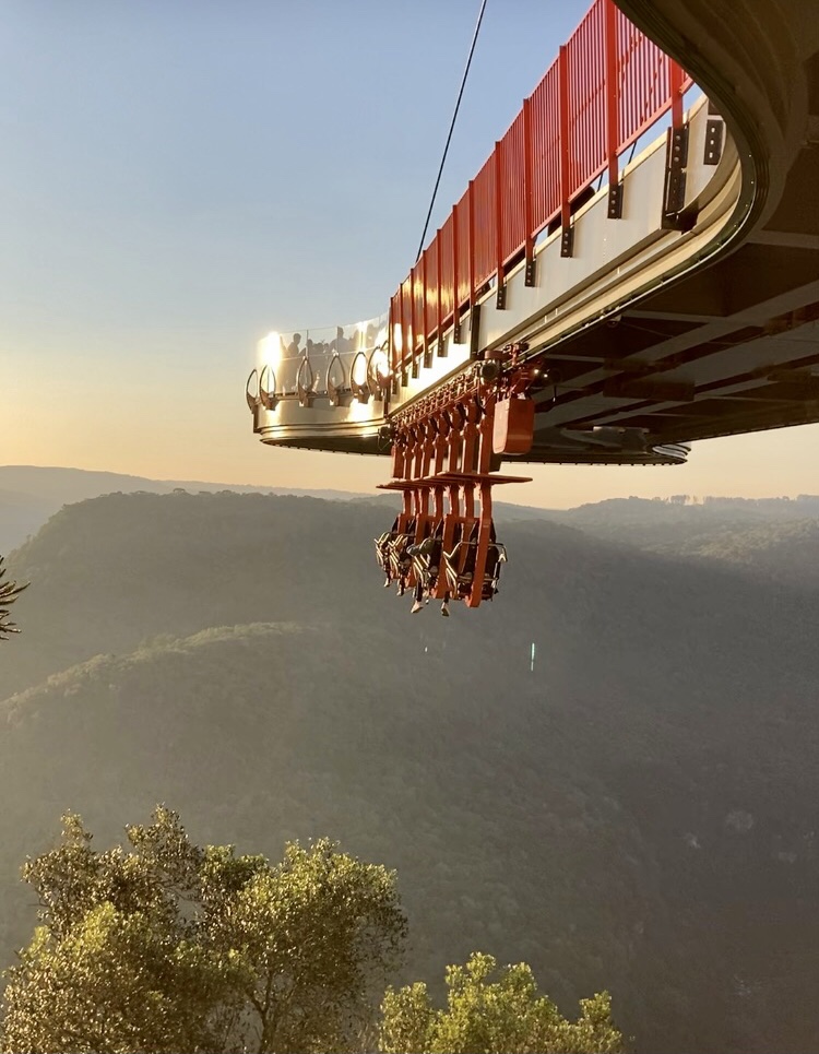 O @skyglass possui a maior plataforma de aço e vidro do mundo. Única da América Latina, a plataforma avança 35 metros sobre o vale. Para os mais ousados, o parque conta com o Abusado, que levará você por um passeio suspenso a 360 metros de distância do Rio Caí.