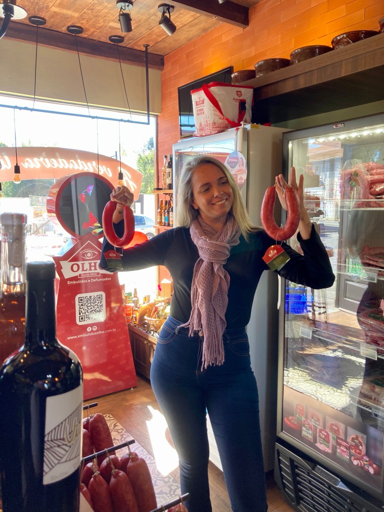Então começaremos nosso tour pelo centro da bela Pomerode visitando uma tradicional loja de embutidos da cidade. A @olhoembutidos busca manter a tradição dos colonizadores germânicos, elaborando criteriosamente embutidos e defumados artesanais, aliando novas tecnologias aos nobres sabores das requintadas tradições, originando produtos de altíssima qualidade.