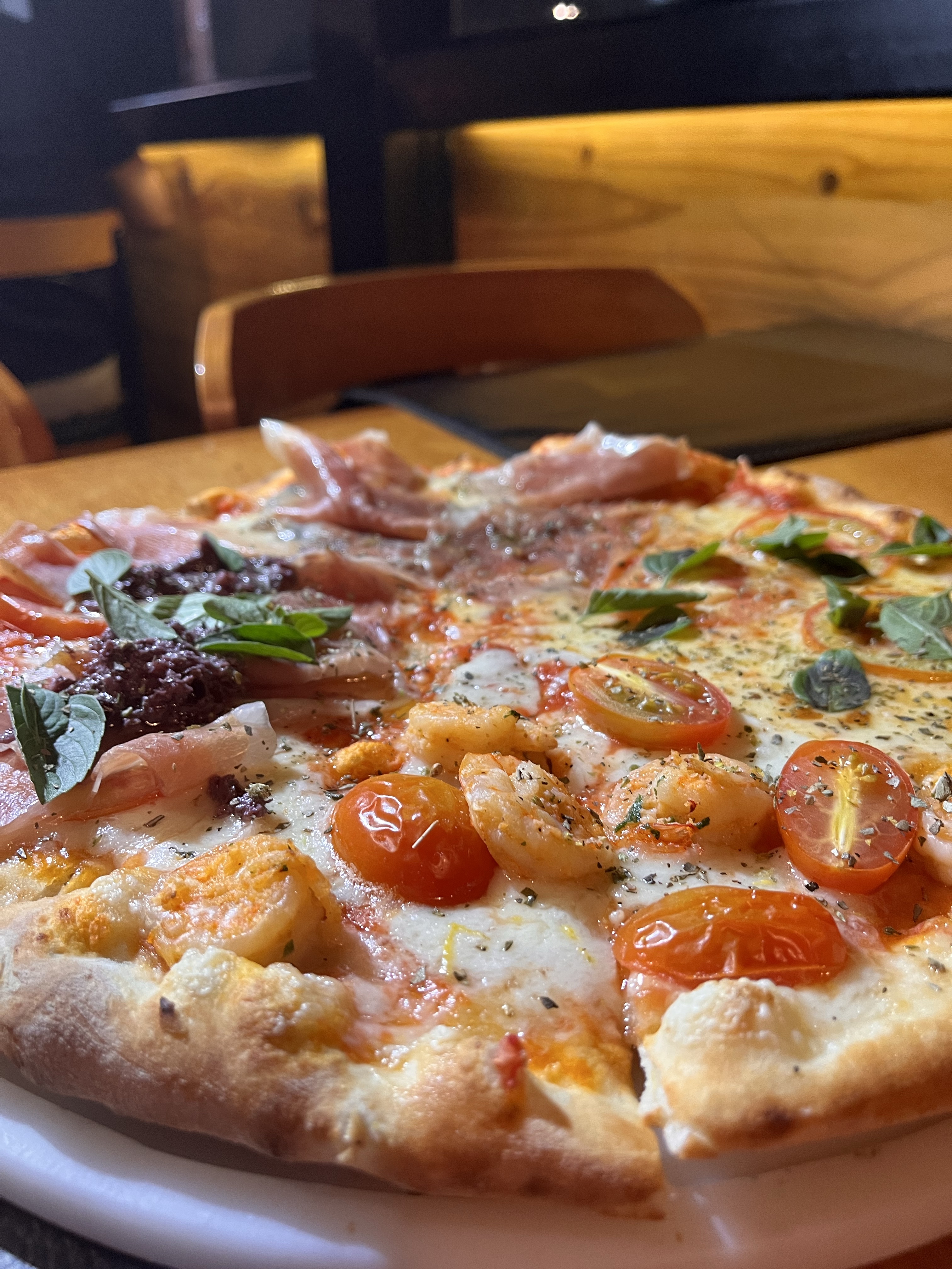 Começamos com uma tábua de frios de entrada, que vem completa e super bem montada. Partimos para escolha da pizza e tivemos a ajuda do garçom espetacular que nos atendeu nos sugeriu a escolha de alguns sabores.