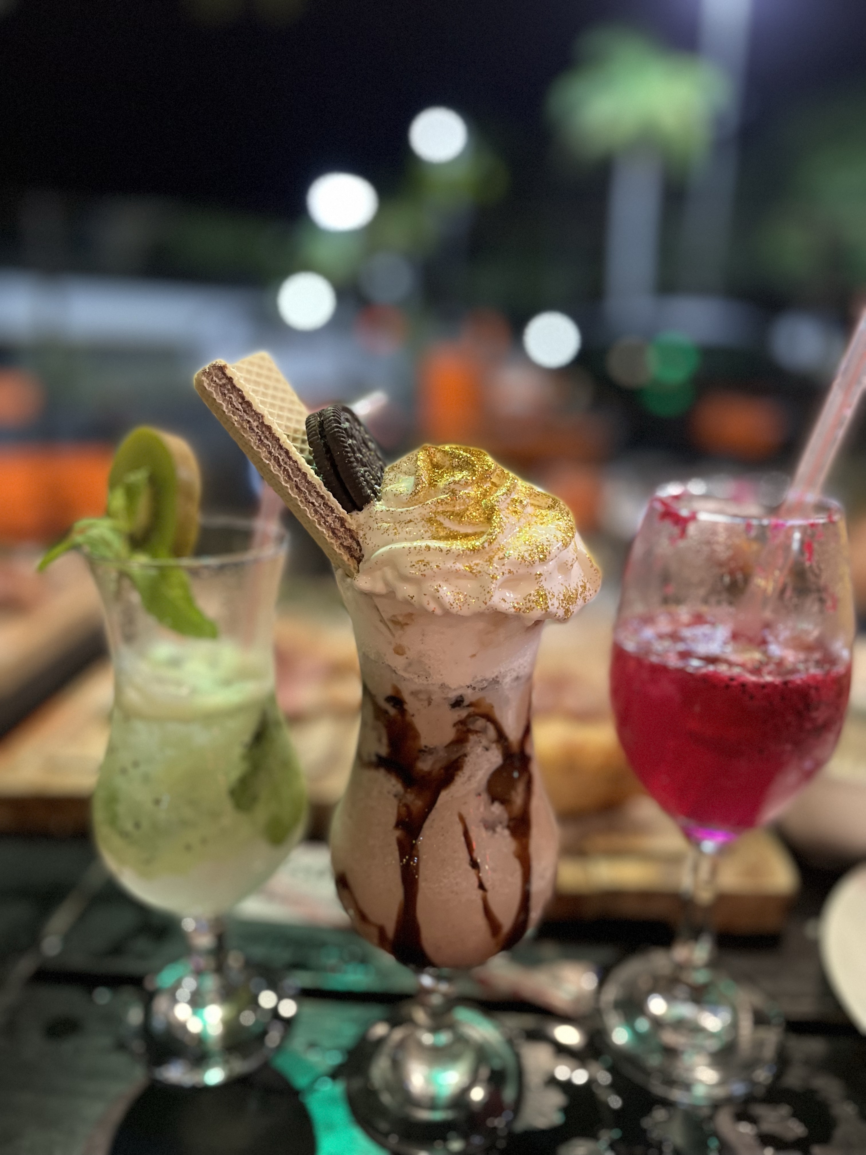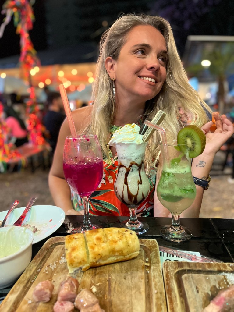 Nossa mesa ficou cheia de delícias, já que vieram os filés 🥩 e os drinks mais pedidos pelos clientes, deixando a Carolzinha super feliz e satisfeita com a escolha da noite de despedida da cidade.