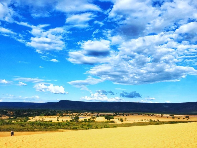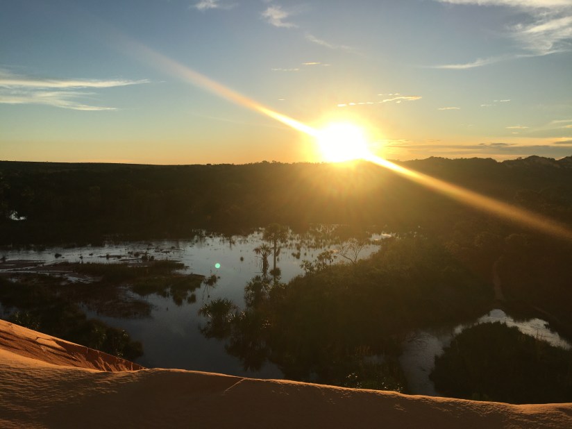 Partindo de Ponte Alta seguimos em direção ao Parque Estadual, onde curtimos a Praia do Rio Novo, a Cachoeira da Velha e o mais incrível do primeiro dia, que são as Dunas do Jalapão, já na cidade de Mateiros.